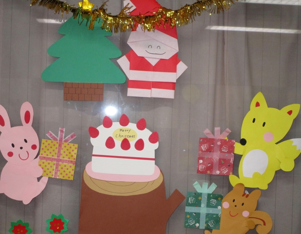 ころりん広場の先生方が、壁面にクリスマスの飾りを作ってくださいました
